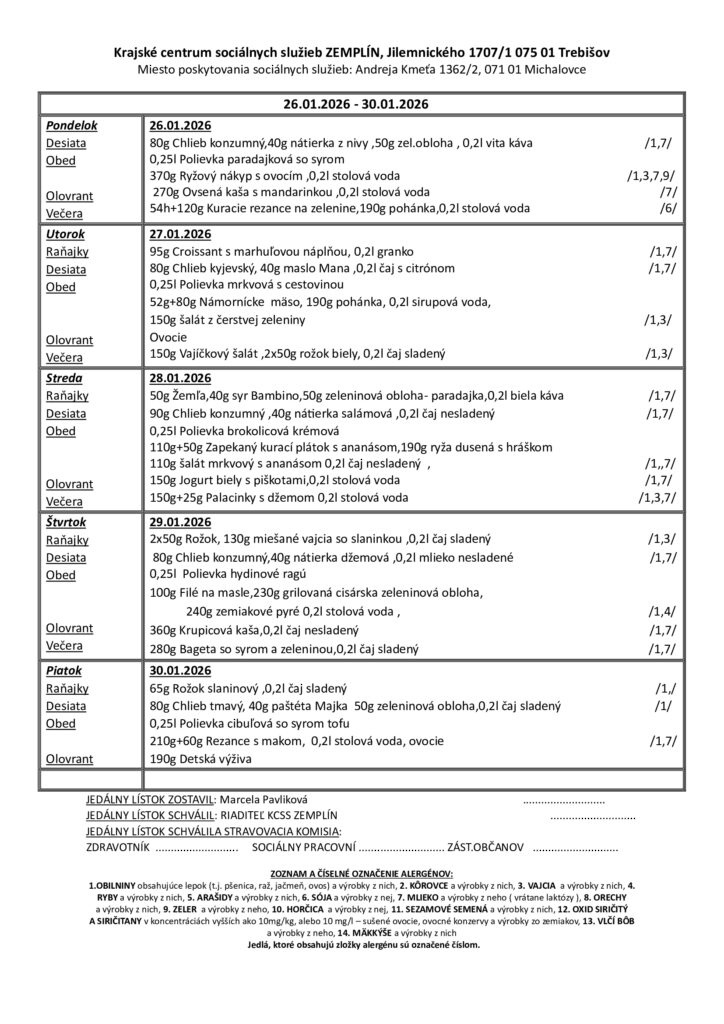• čas výdaja večere: 16,00 – 17,15 hod.