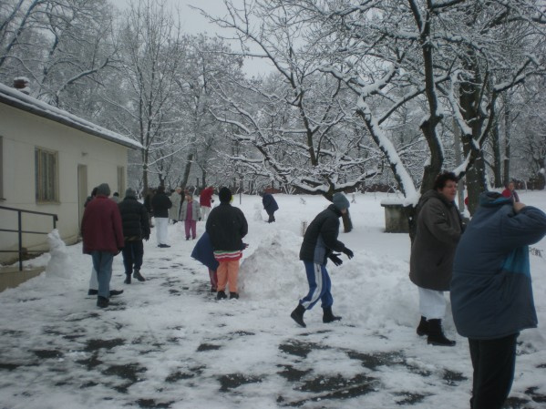 Guľovačka 2008 Zimnej nádielke sa tešili aj klienti nášho zariadenia. Veľkú radosť im robilo aj stavanie snehuliakov. Neobišlo sa to ani bez parádnej guľovačky.