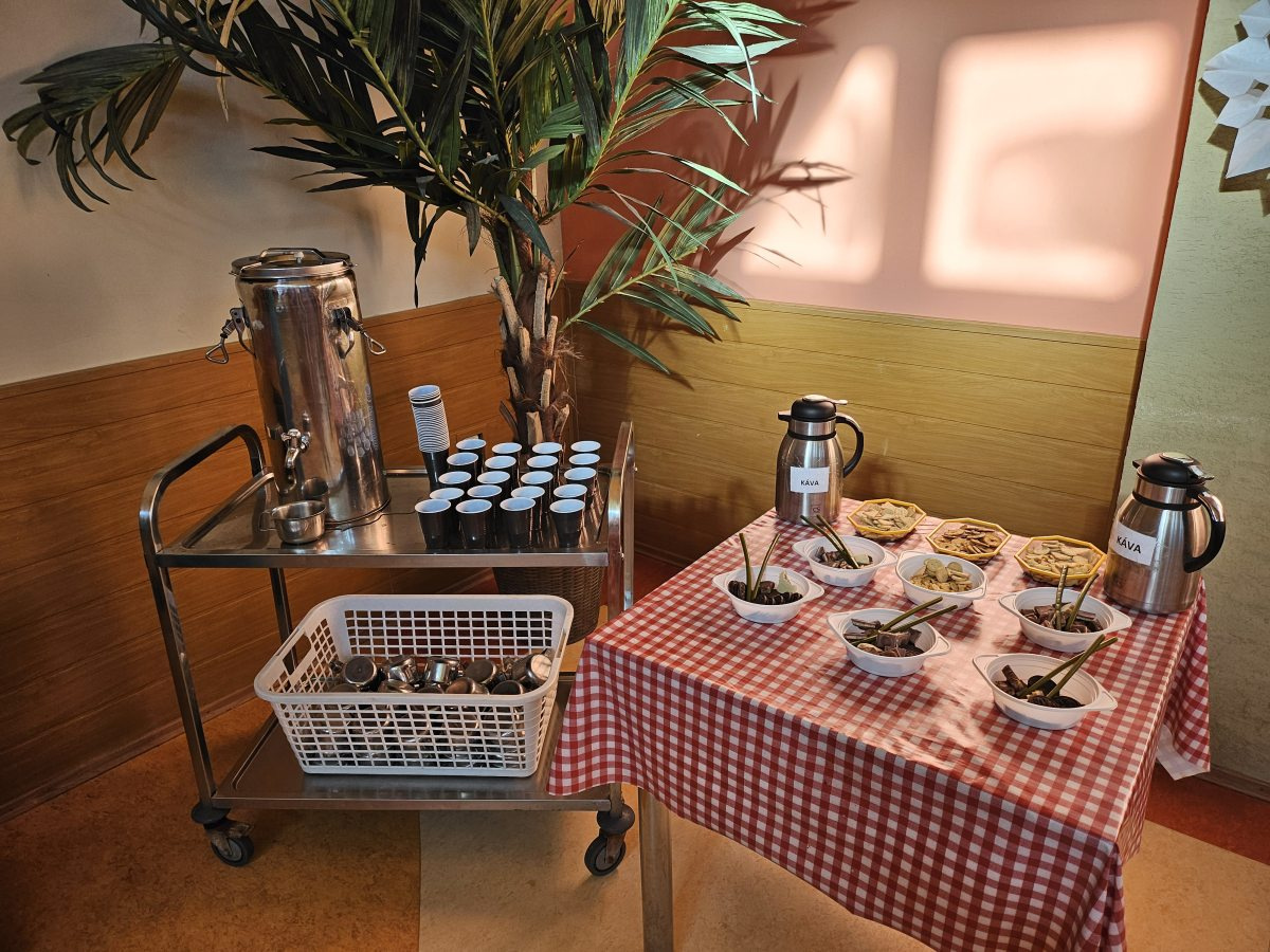 Viete, čo tomu dáva šmrnc? No predsa relaxačná hudba, medzitým občerstvenie, káva, čaj a samozrejme slané-sladké potešenie.