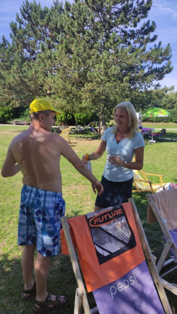 Voda bola svieža, príjemná. Takto sme sa okúpali celý deň. Po zjedení chutného obeda, ktorý nám nachystali naše kuchárky, sme sa schladili aj zmrzlinou. Keď nám vytrávilo, hlad sme zahnali langošom a hranolkami. Hladní sme veru neboli.