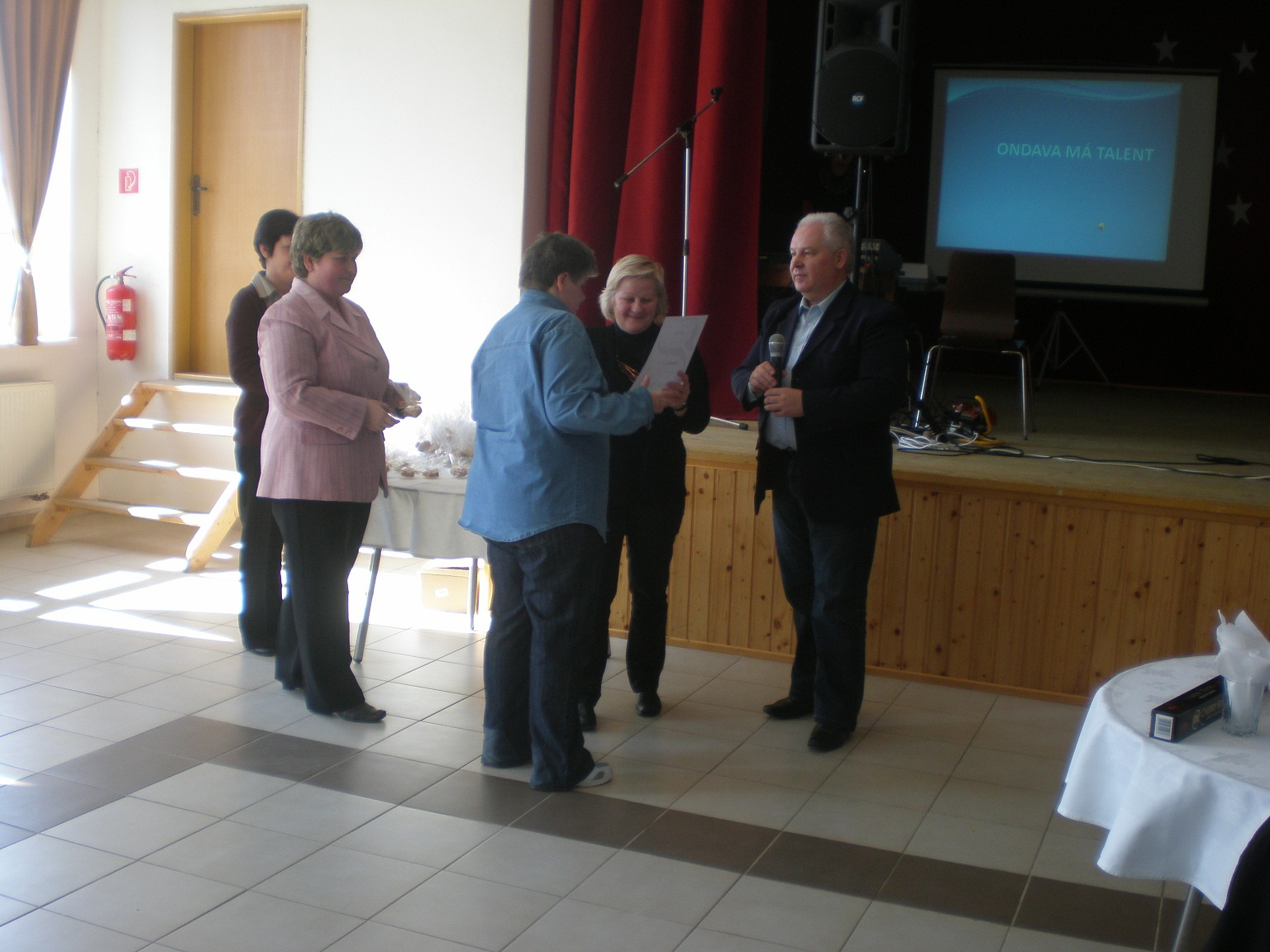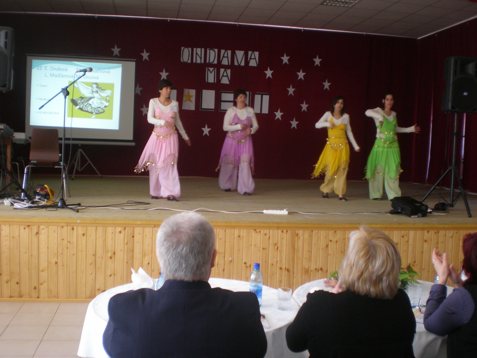 ONDAVA- DSS má talent           Nechýbala ani odborná porota, ktorá bola v zložení: Mgr. Rafayová riaditeľka Zemplínskeho osvetového strediska, p. Tkáčová pracovníčka Zemplínskeho osvetového strediska, riaditeľka DD a DSS Harmónia Strážske Ing. Dunajová, riaditeľ DSS Anima Michalovce Mgr. Hrdinsky a riaditeľ DSS Ondava Rakovec nad Ondavou  Bc. Ing. Badida.           Porota mala určite ťažkú úlohu vyhodnotiť 33 účinkujúcich v štyroch kategóriach a to spev, tanec, recitácia a v hre na hudobný nástroj. Medzi jednotlivými blokmi sa predstavili aj naši hostia  a to v minulých rokoch chýbalo.               Myslíme si, že sme dokázali, že každý z nás, malý či veľký, bohatý či chudobný, vzdelaný či menej vzdelaný má takú istú hodnotu ako ktorákoľvek iná osoba.