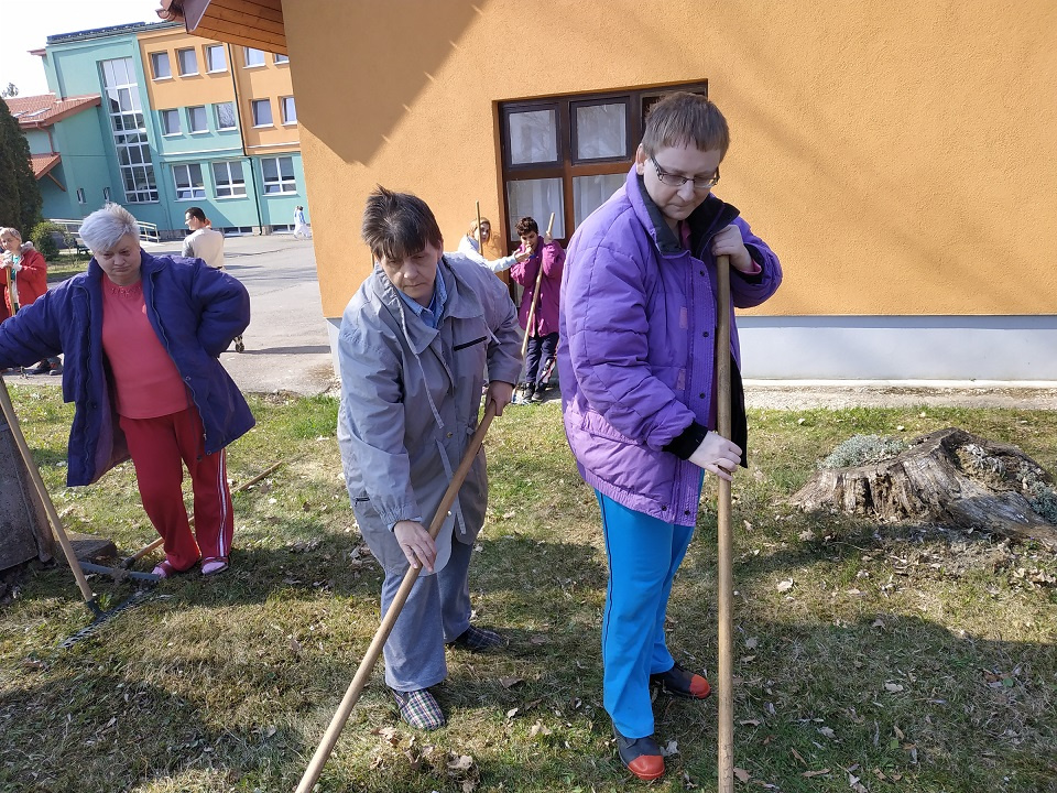Rozvoj pracovných zručností realizujeme pri úprave a údržbe lesoparku, športového ihriska, záhonov, políčka, chodníkov a interiéru  zariadenia.