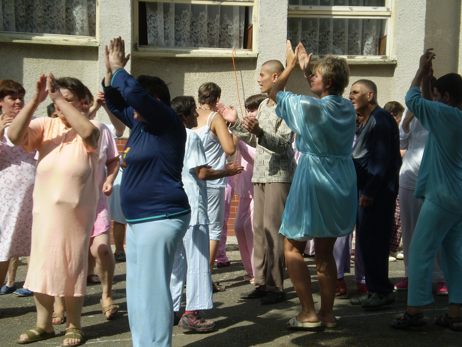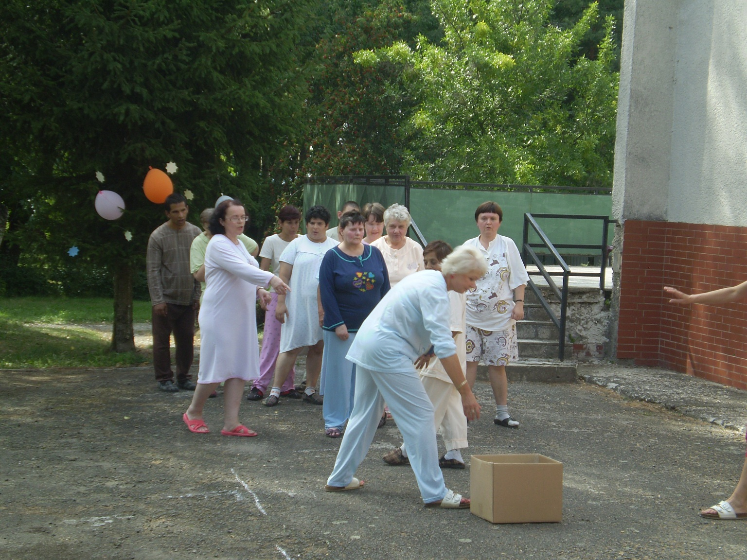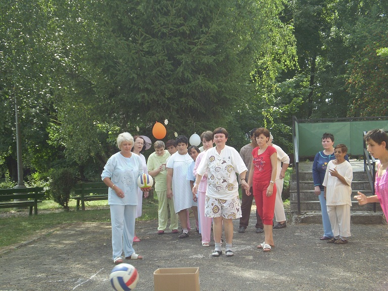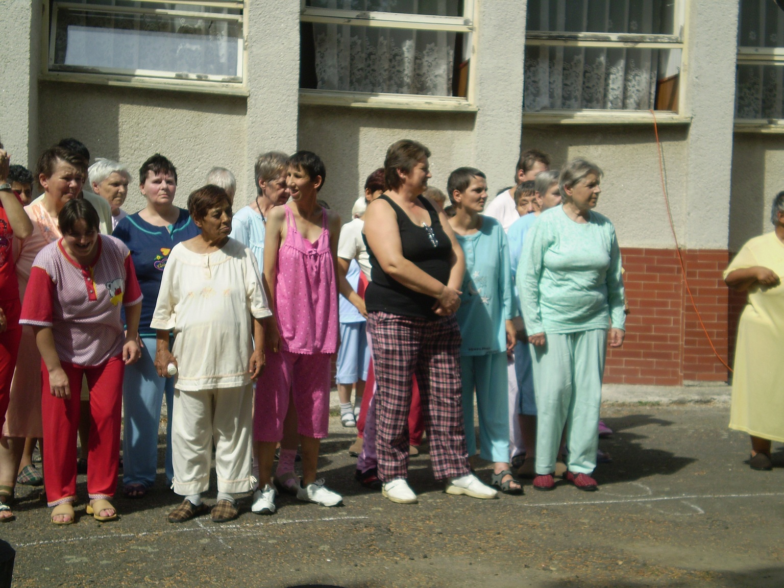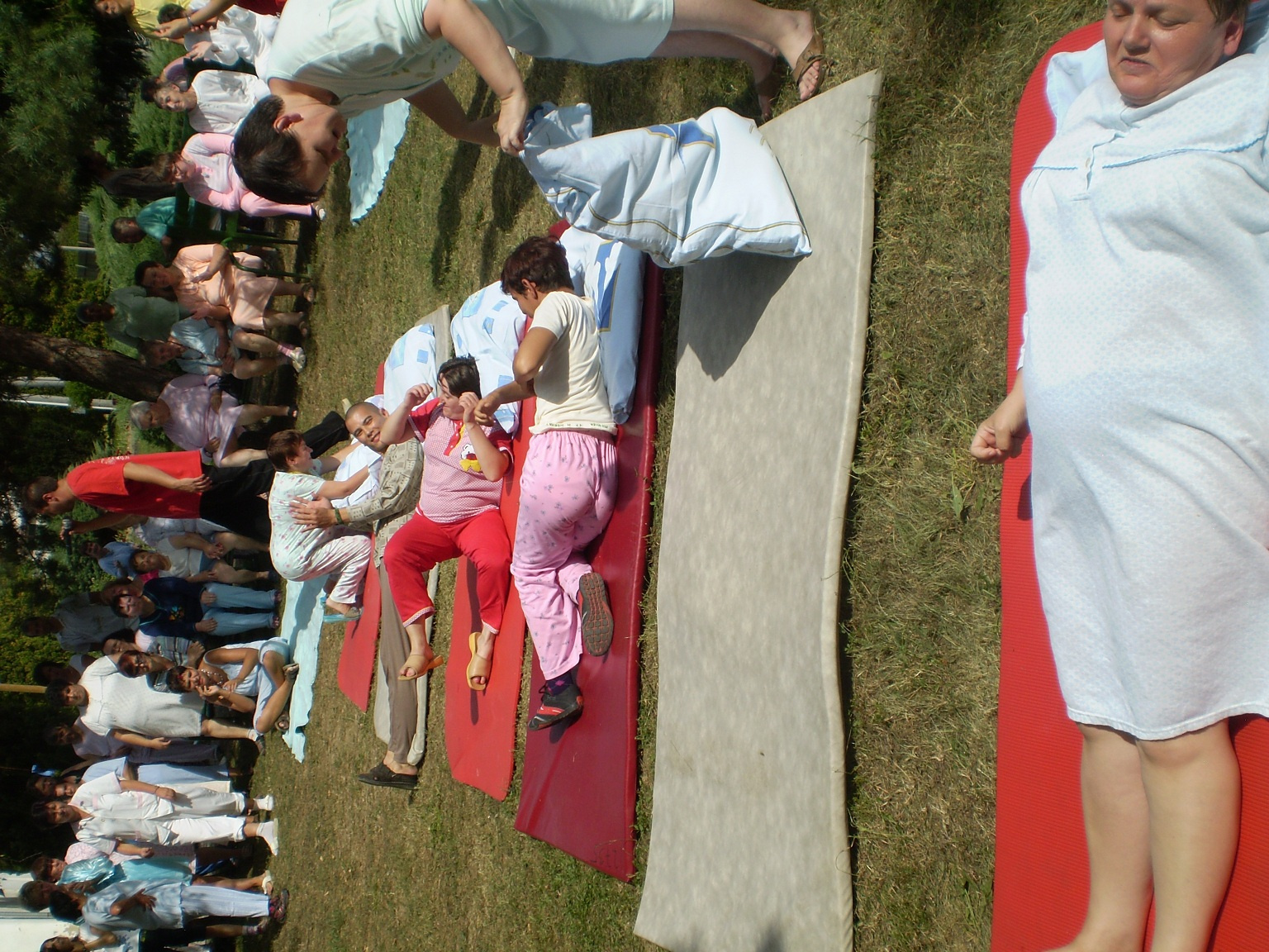 Pyžamová párty Už po druhý krát sa konala v našom zariadení "Pyžamová párty".Znova  poobliekané pyžamá mali nielen klienti, ale aj zamestnanci zariadenia.  Počasie nám vyšlo aj tento rok a preto sa  akcia konala vonku v areáli zariadenia. Súťažné disciplíny sprevádzali popoludnie 22.08.2012 ako: hod loptou do krabice, obliekanie vankúšov, hrnčekový tanec, súťaž o najvyšší komín  z kociek. Každá súťažná disciplína mala víťaza, ktorý bol odmenený. Jednotlivé súťažné disciplíny sprevádzala muzika. Najočakábanejším bodom bolo vyhodnotenie oblečenia a to titulom Top women a Top men 2012.